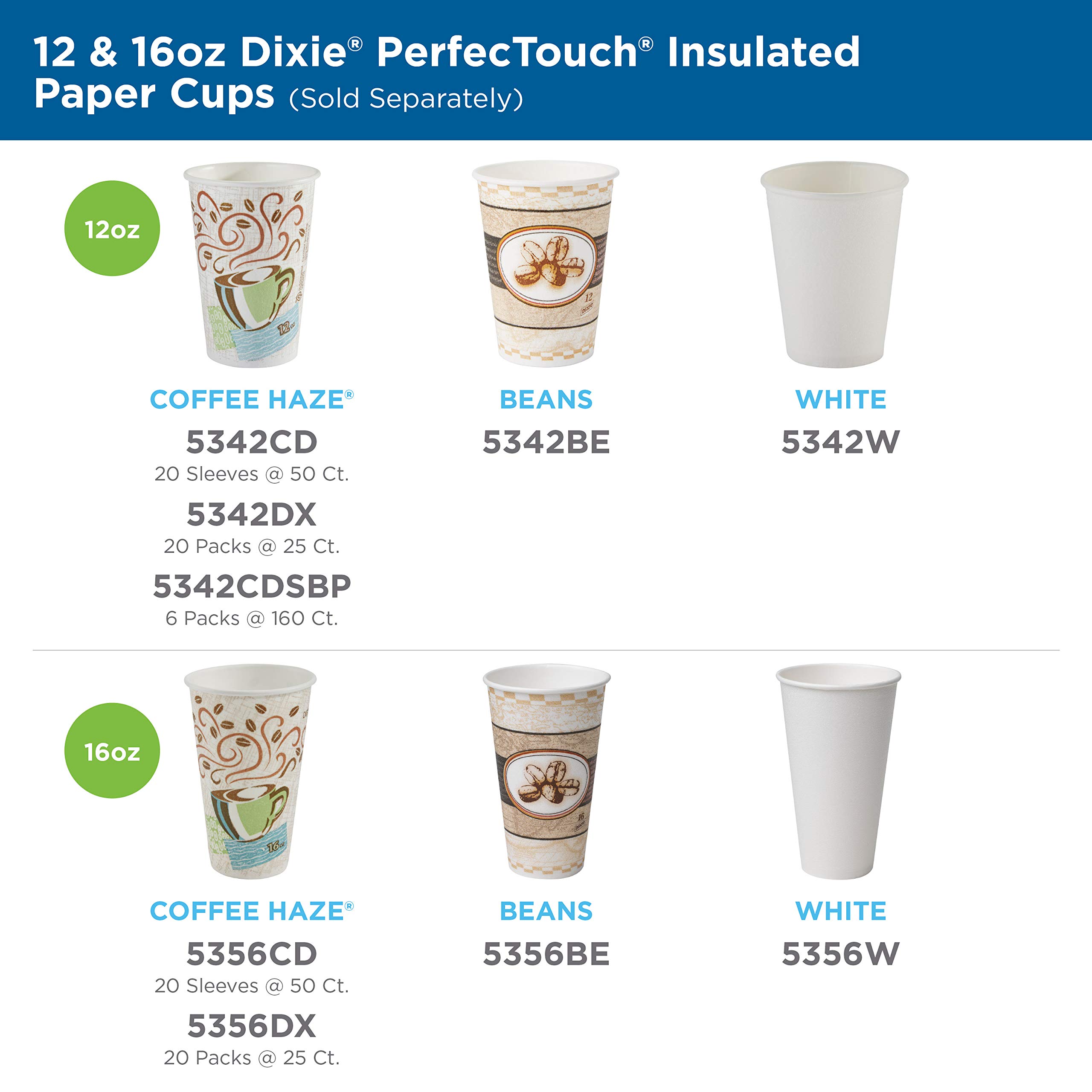 Dixie PerfecTouch 12 oz Paper Coffee Cup and Lids by GP PRO, Coffee Haze Design, 300 Cups and Lids (50 Disposable Cups and Lids Per Pack, 6 Packs Per Case), 5342COMBO600