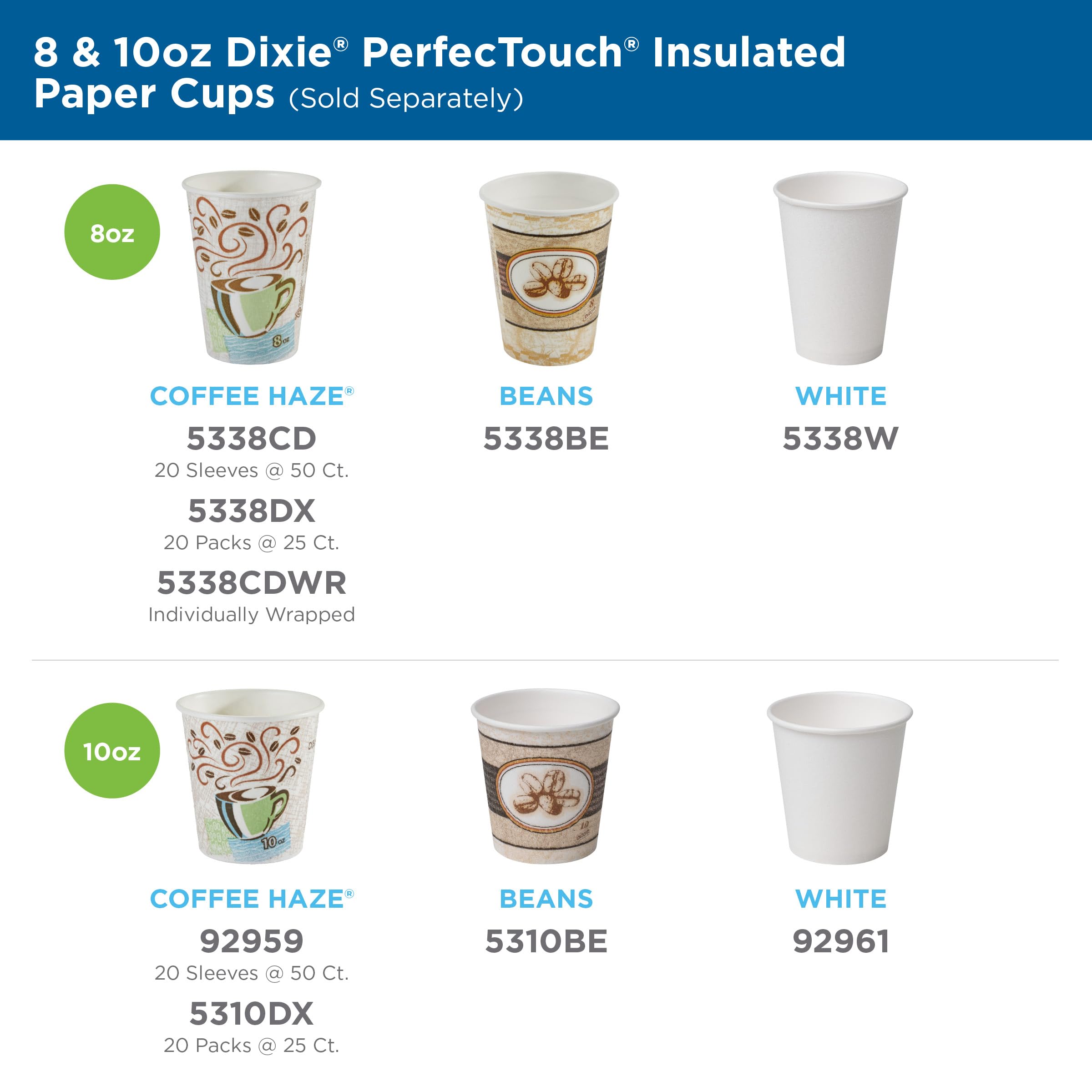 - ON THE GO LIDS: Dixie 8oz PerfecTouch cups are compatible with Dixie small lids (DL9538B, D9538); lids are not included