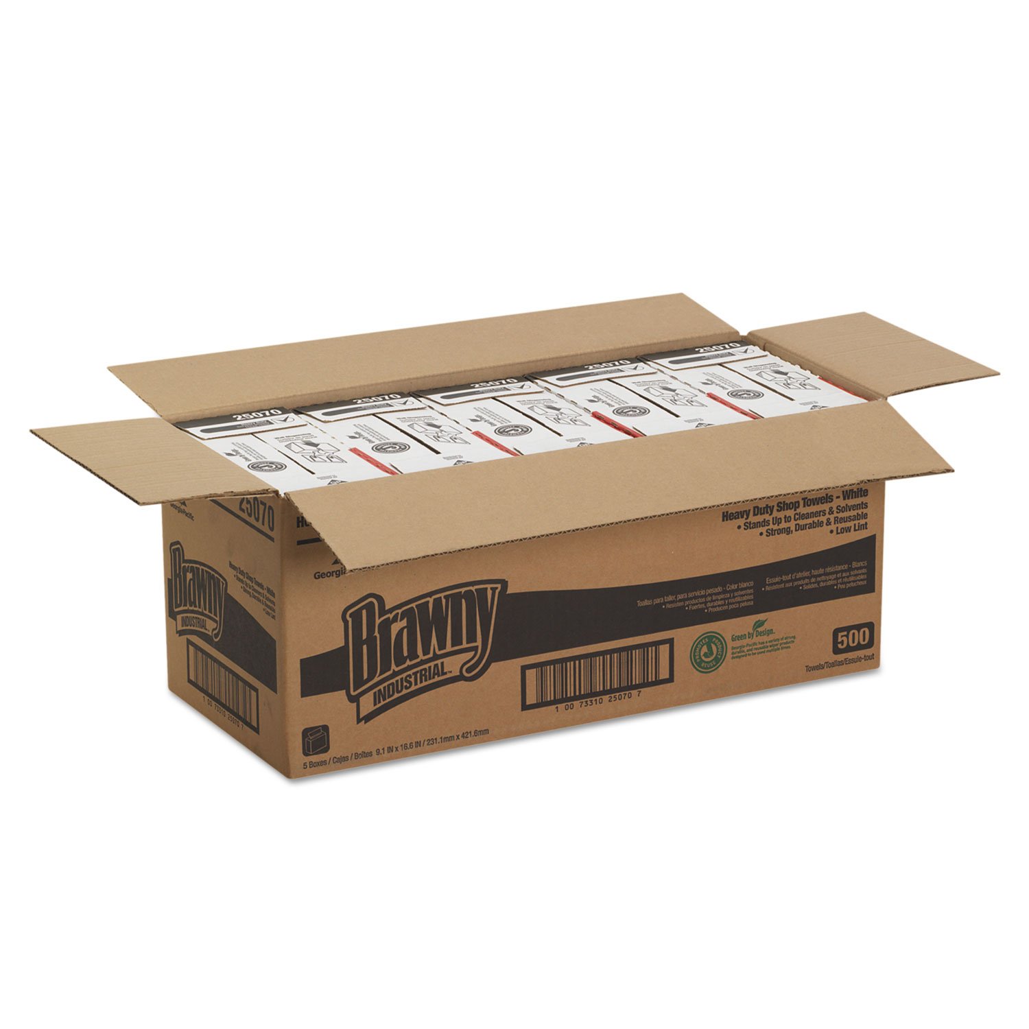 Georgia-Pacific Brawny Industrial Medium-Weight HEF Shop Towel by GP PRO (Georgia-Pacific), 25070, White, 9.1" W x 16.5" L, 500 Count (Case of 5 Boxes, 100 Wipers Per Box)