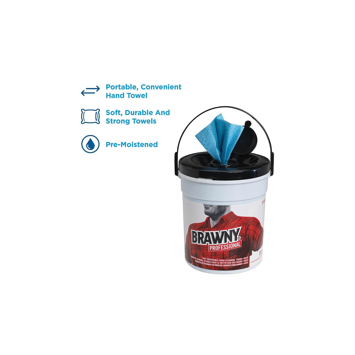 Georgia-Pacific Brawny Professional Disposable Wet Hand Cleaning Towel by GP PRO (Georgia-Pacific), 21501, Blue, 84 Towels Per Bucket, 6 Buckets Per Case, Towel (WxL) 8.6" x 12.2"